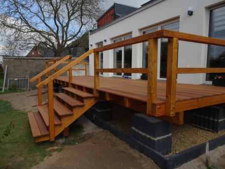Terrasse aus Mukulungo-Holz mit aufwändiger Unterkonstruktion