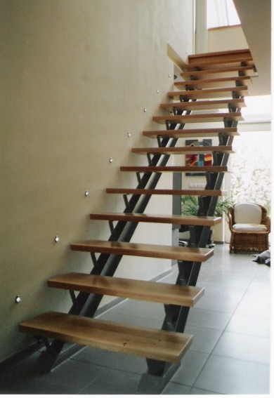 Tollkühne Stahlkonstruktion mit 70 mm starken massiven Buchenstufen