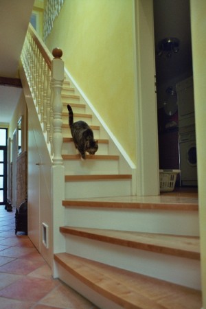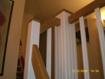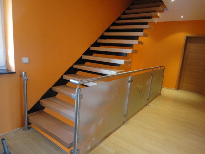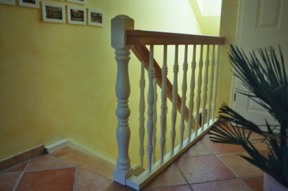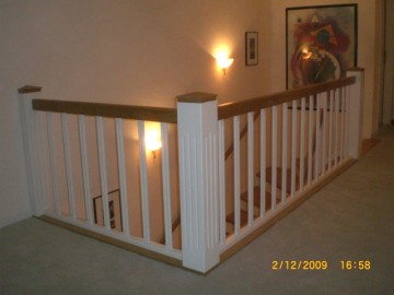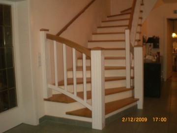 Treppenstufen Eiche massiv auf Beton, Geländer Weißlack mit Eiche